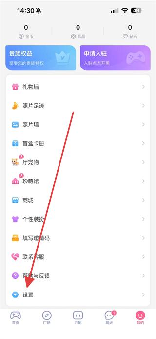 2、在個(gè)人頁(yè)面中,點(diǎn)擊設(shè)置選項(xiàng)。