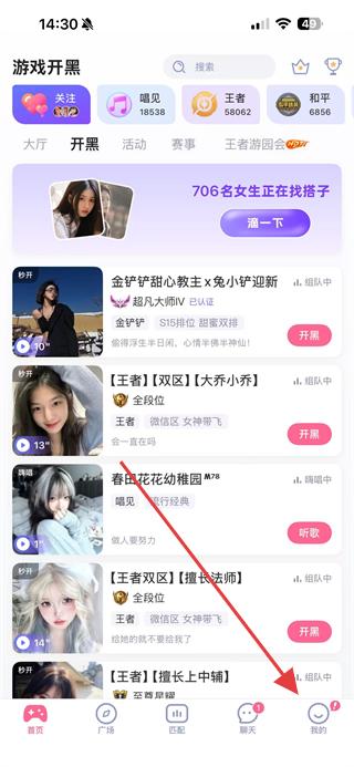 1、打開點(diǎn)點(diǎn)開黑應(yīng)用,點(diǎn)擊底部導(dǎo)航欄的我的選項(xiàng)。