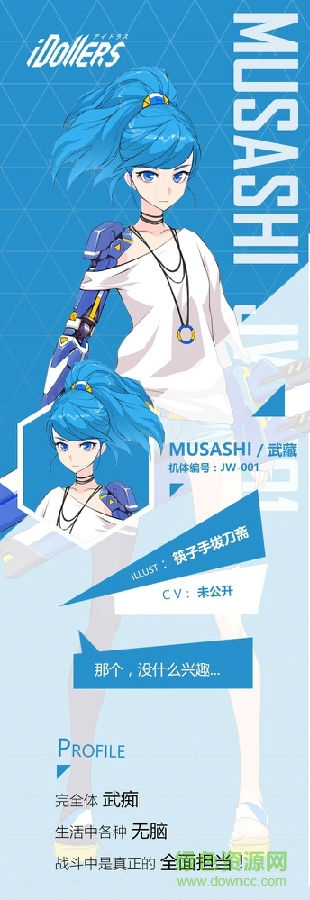 以武藏為原型的機械小姐姐設定,第一只來自11區(qū)的角色,機體編號JW-001,由繪師ecroment繪制