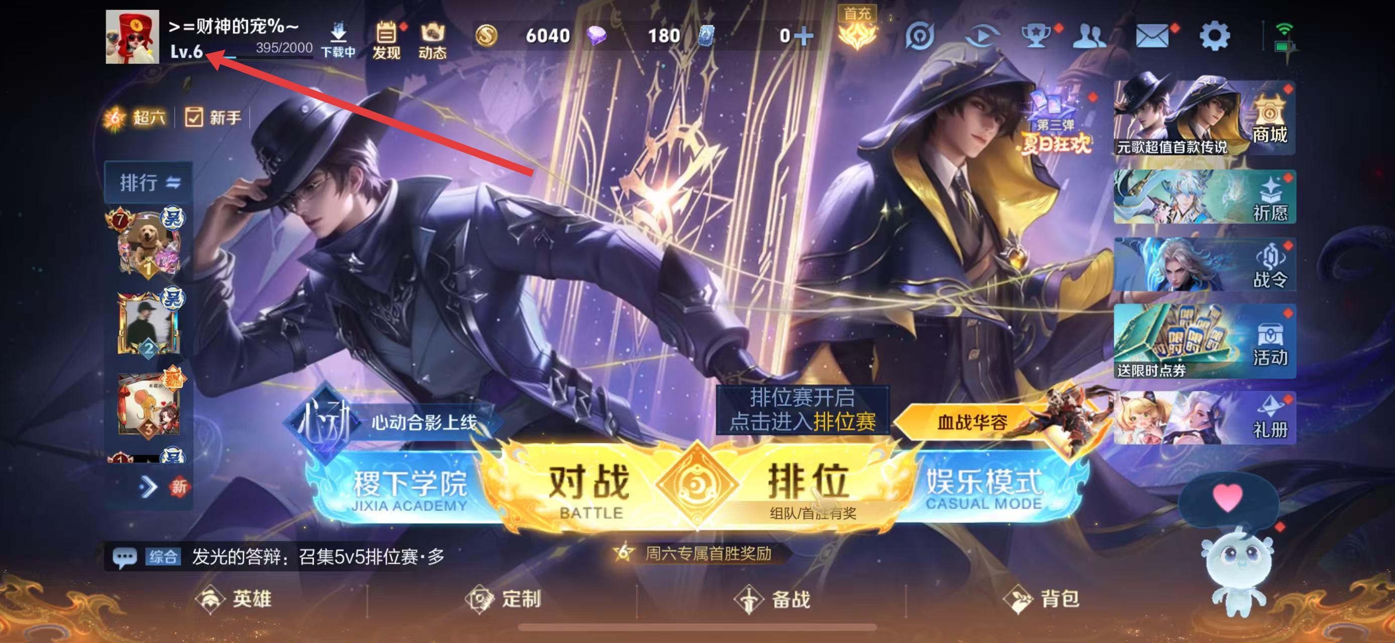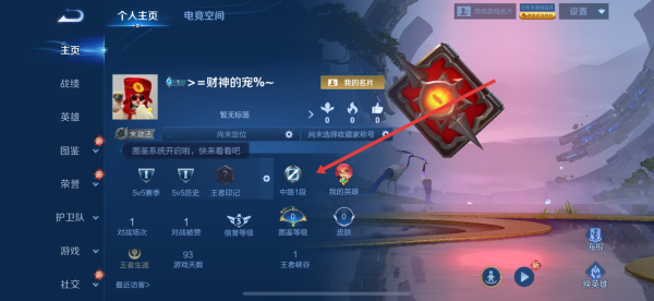 1、進(jìn)入王者榮耀游戲主界面,點(diǎn)擊左上角的頭像,進(jìn)入個(gè)人主頁(yè)界面。