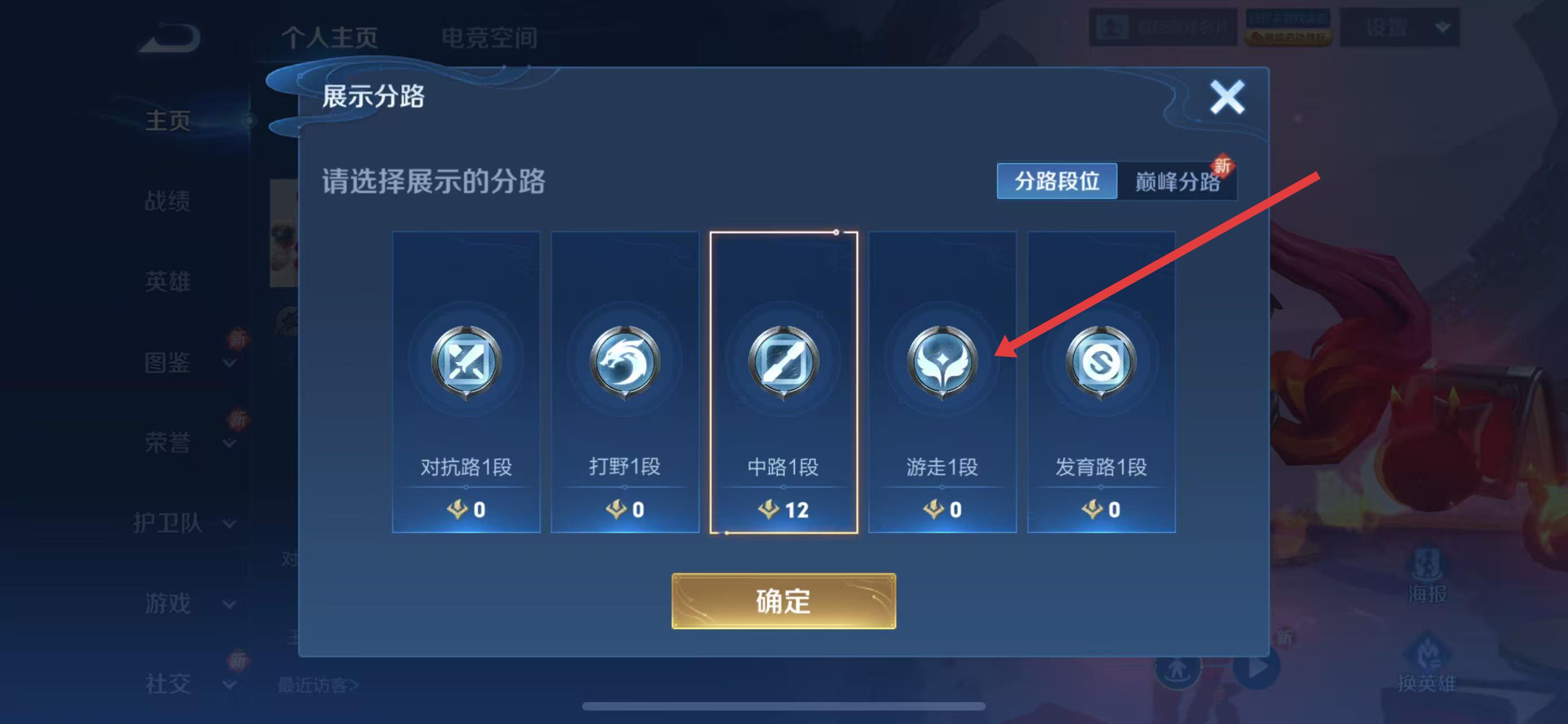 3、在展示分路設(shè)置界面中,選擇想要展示的分路,比如游走1段等,點(diǎn)擊確定,即可完成分路修改與展示設(shè)置。