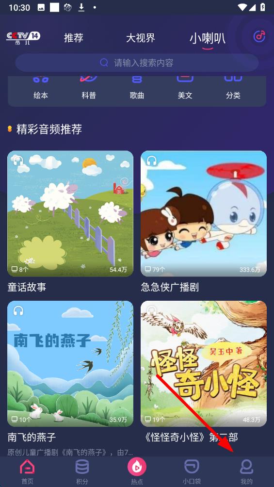 1、進(jìn)入央視少app首頁,在底部找到我的選項并點擊。