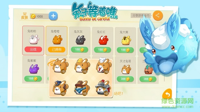 超級激萌可愛的兔兔形象,比擬真實(shí)玩偶的皮膚特質(zhì),超多皮膚可供選擇,每次升級自動變換形象的良心設(shè)計(jì)!