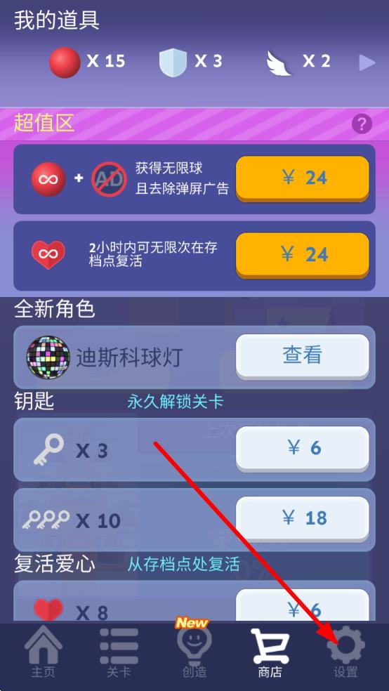 1、進(jìn)入滾動(dòng)的天空游戲,點(diǎn)擊底部設(shè)置進(jìn)入設(shè)置界面。