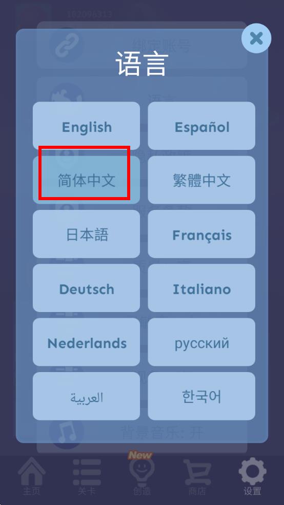 3、于語(yǔ)言列表中選簡(jiǎn)體中文,完成游戲語(yǔ)言設(shè)置。