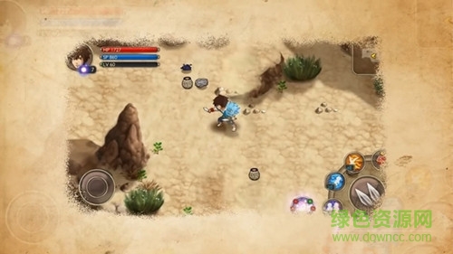 游戲中的操作方法還是比較簡單的,通過拖動虛擬搖桿,玩家可以控制角色的移動,而在畫面的右側則是攻擊鍵與道具技能槽,游戲采用了即時戰(zhàn)斗模式,當遇到敵人之后玩家直接點擊攻擊鍵即可對敵人發(fā)起攻擊,而血量則會直接顯示在敵人頭上,玩家需要控制好攻擊的角度和方向,而點擊技能鍵可以直接發(fā)動技能讓敵人損失更多的生命值,當自己的生命值過少的時候,玩家也可以直接點擊道具進行補充,輪盤式的設計讓操作變的更加簡單,而且畫面看起來也更加美觀。此外在戰(zhàn)斗以外的時候,攻擊鍵還兼具了互動的功能,當玩家走近可以調查的物品的時候就會出現(xiàn)放大鏡圖標,而可以互動的NPC頭上則會出現(xiàn)經(jīng)典的對話氣泡。