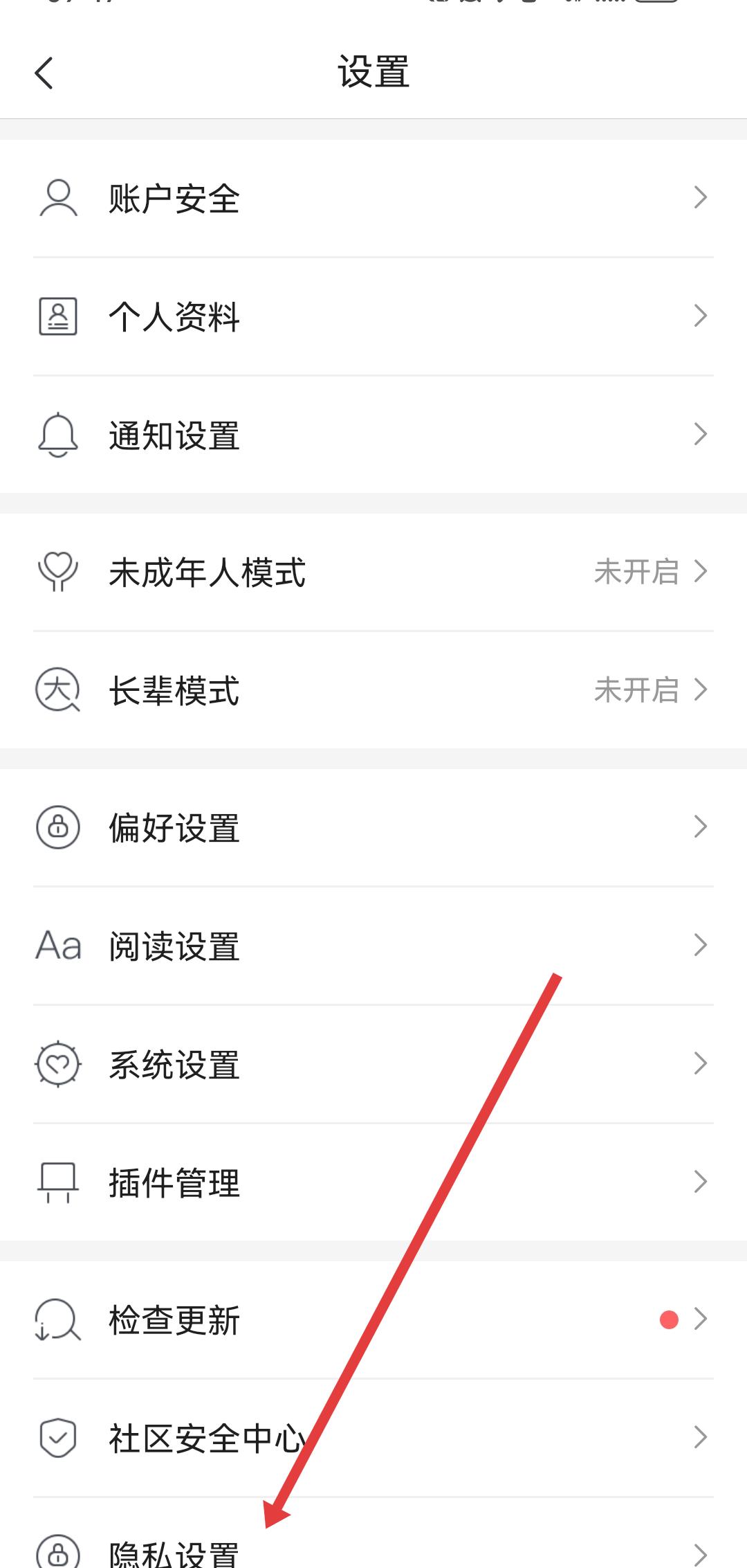 2、在個(gè)人設(shè)置頁(yè)面的列表中,我們需要找到并點(diǎn)擊隱私設(shè)置這一欄目,進(jìn)入隱私設(shè)置的頁(yè)面。