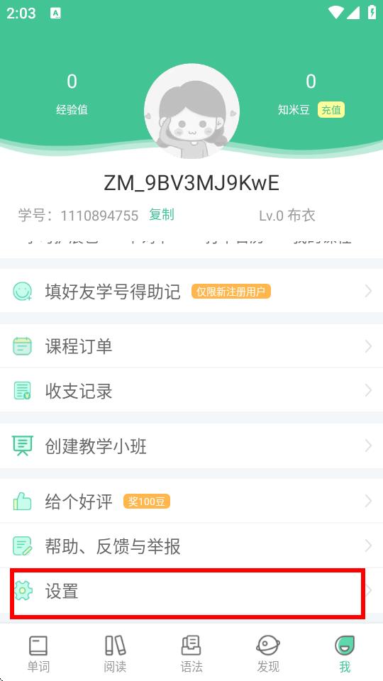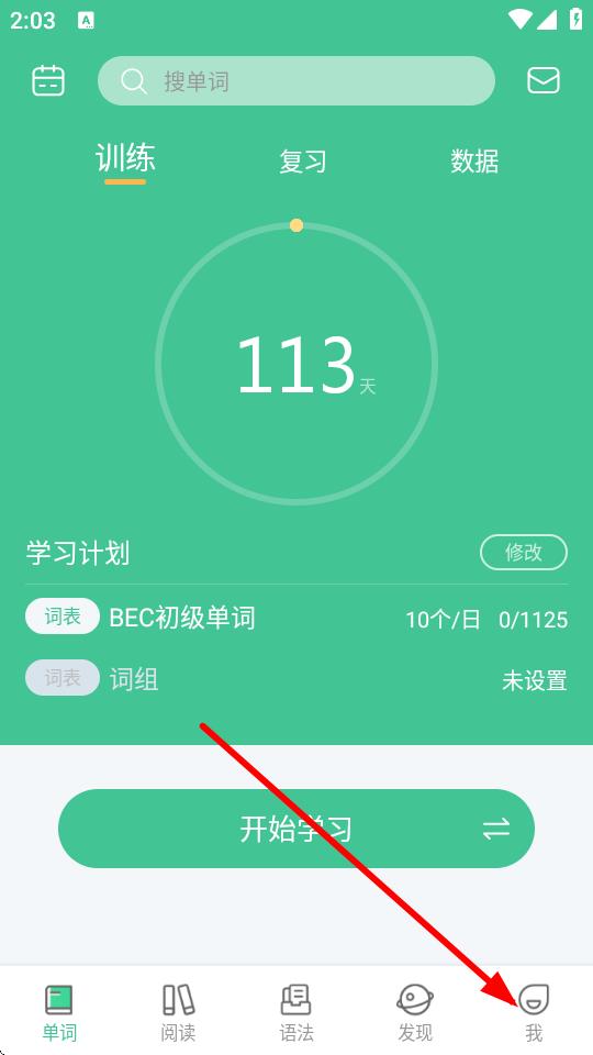 1、打開知米背單詞app,進入主界面后點擊底部導航欄中的我選項。