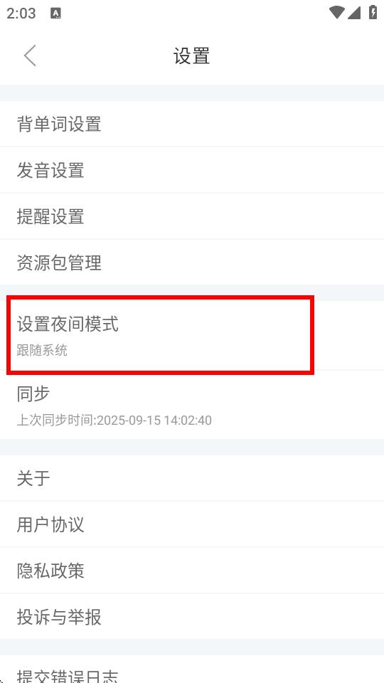 3、進入設(shè)置頁面后,找到設(shè)置夜間模式選項并點擊。