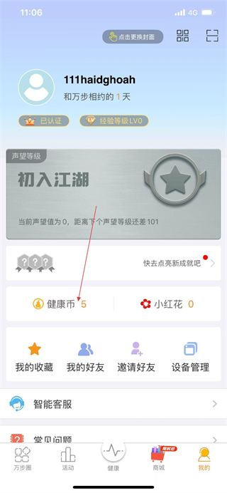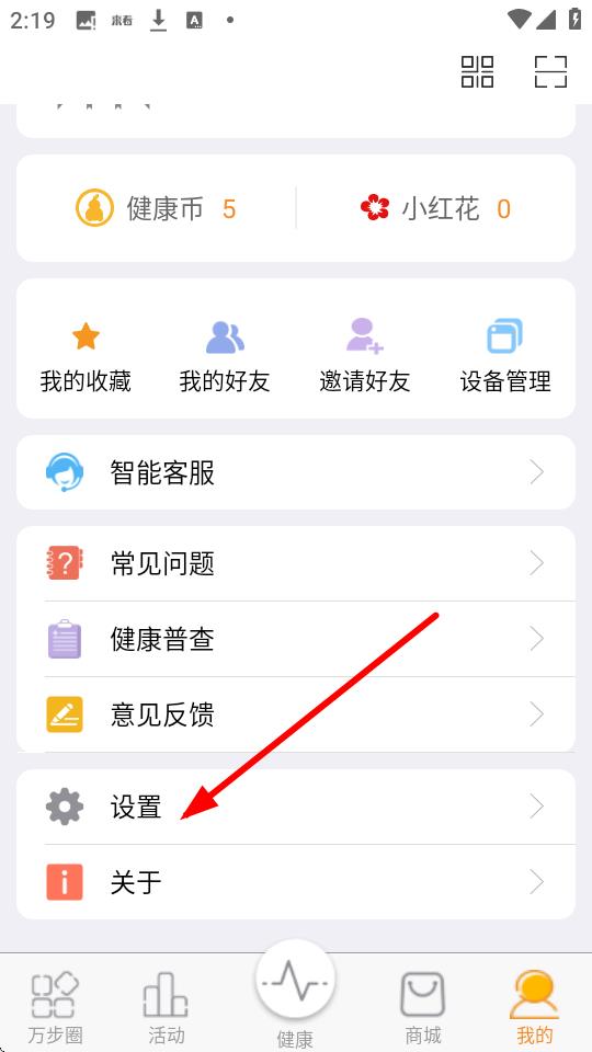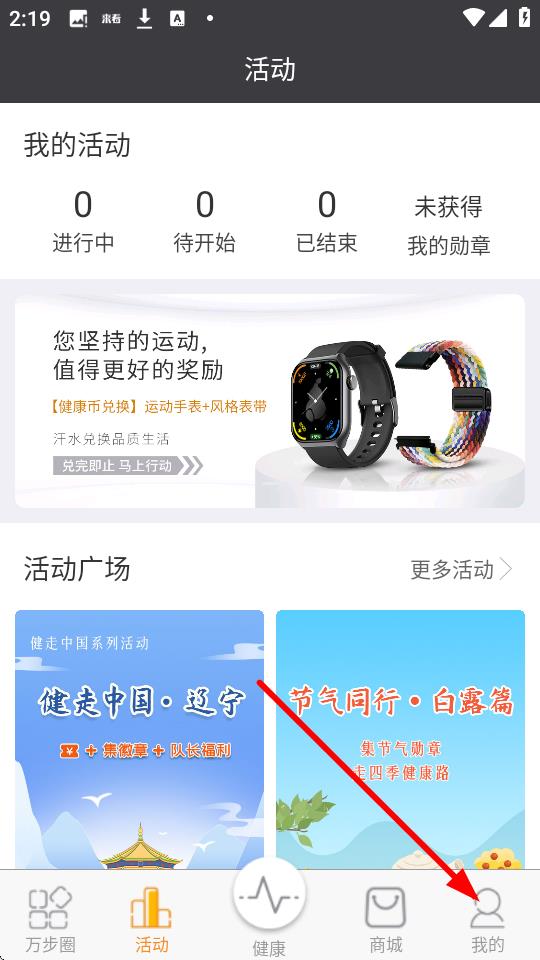 2、在我的頁面找到健康幣選項(xiàng)并點(diǎn)擊。