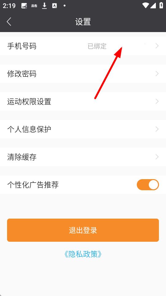 3、在設(shè)置界面里,點(diǎn)擊手機(jī)號碼選項(xiàng),進(jìn)入當(dāng)前手機(jī)號頁面。
