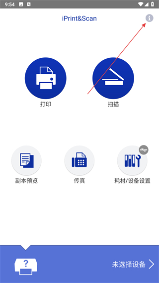 1、打開iPrint&Scan應(yīng)用,點(diǎn)擊界面右上角的信息圖標(biāo),進(jìn)入信息頁(yè)面。