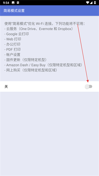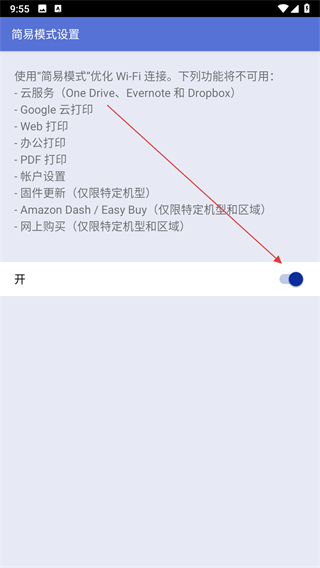 4、點(diǎn)擊該開關(guān)按鈕,將其切換為開啟狀態(tài),即可啟用兄弟打印機(jī)的簡(jiǎn)易模式。