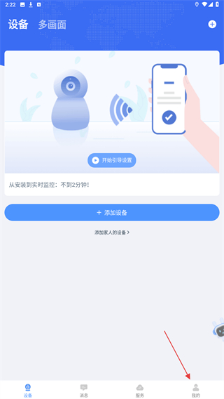 1、打開(kāi)eseecloud APP,進(jìn)入設(shè)備多畫(huà)面界面,點(diǎn)擊+添加設(shè)備按鈕。