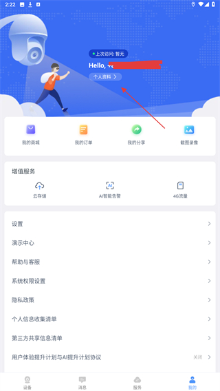 2、在個(gè)人中心的頁(yè)面內(nèi),點(diǎn)擊個(gè)人資料的按鈕。