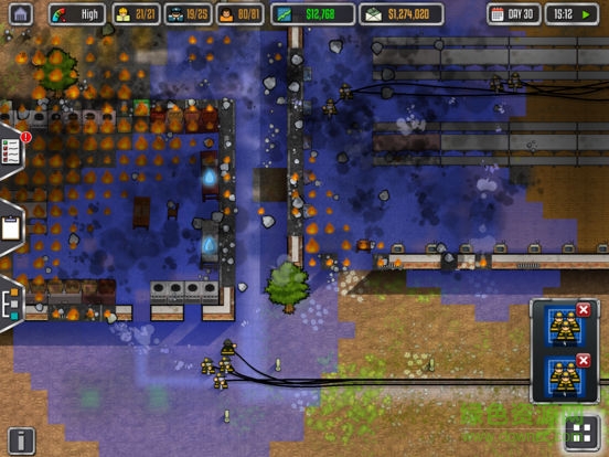 “鏟平”可以拆掉已有建筑(可以用來拆掉墻壁或地板,但是會把拆掉的區(qū)域變成室外區(qū)域)。這項任務將通過工人來完成。如果你只是想刪除一堵墻,但想讓拆掉墻的地方變成一個“室內(nèi)區(qū)域”,你應該使用“建材”菜單里的“清除室內(nèi)區(qū)域”工具。