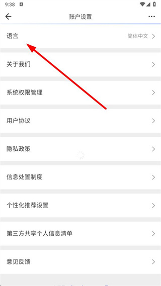 3、在賬戶設置頁面,點擊語言選項,彈出語言選擇列表。