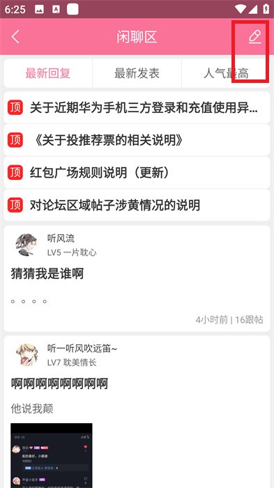 3、該功能界面中,用戶能夠點(diǎn)擊右上角的【鉛筆】標(biāo)志進(jìn)入到發(fā)布帖子頁面;