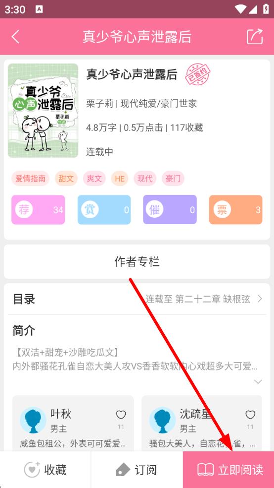 3、在小說詳情頁,點(diǎn)擊右下角立即閱讀按鈕,即可開始閱讀該小說內(nèi)容。