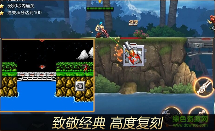 魂斗羅歸來(lái)百度版是一款經(jīng)典射擊手游,還原黑白游戲機(jī)原汁原味的關(guān)卡射擊模式,支持多人在線組隊(duì)通關(guān),更有實(shí)時(shí)競(jìng)技對(duì)戰(zhàn),非常好玩,豐富精彩手機(jī)游戲盡在綠色資源網(wǎng)!