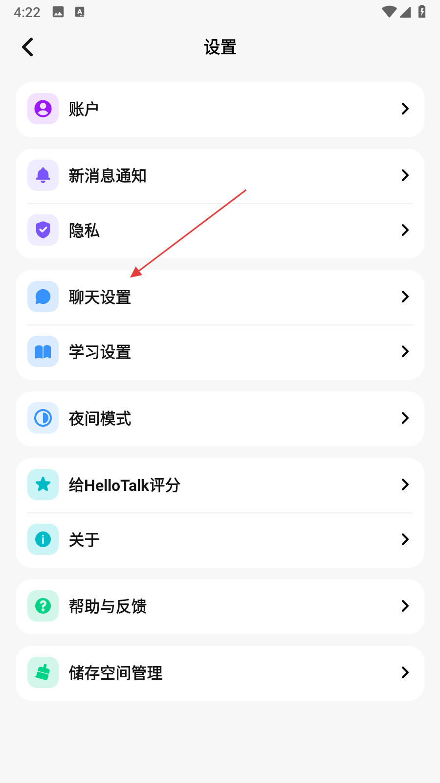 2、在設(shè)置界面中,找到并點(diǎn)擊聊天設(shè)置選項(xiàng),進(jìn)入聊天設(shè)置頁面。