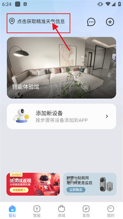 1、將軟件從桌面上點(diǎn)擊進(jìn)入,在首頁(yè)上方可以自動(dòng)定位,并獲取到當(dāng)天的天氣信息;