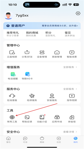 2、在我的頁(yè)面內(nèi),在工具下找到并點(diǎn)擊常用工具的按鈕。