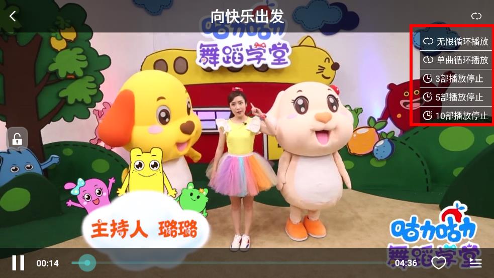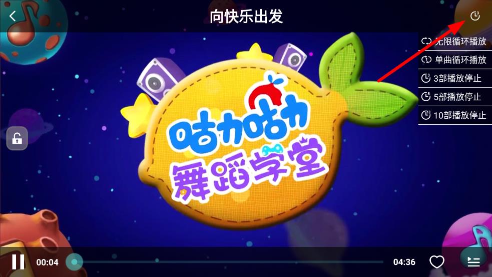 1、打開兒童舞蹈大全app,選擇想要播放的舞蹈視頻,進入視頻播放界面后,留意視頻播放界面右上角,有一個循環(huán)播放相關(guān)的圖標按鈕。