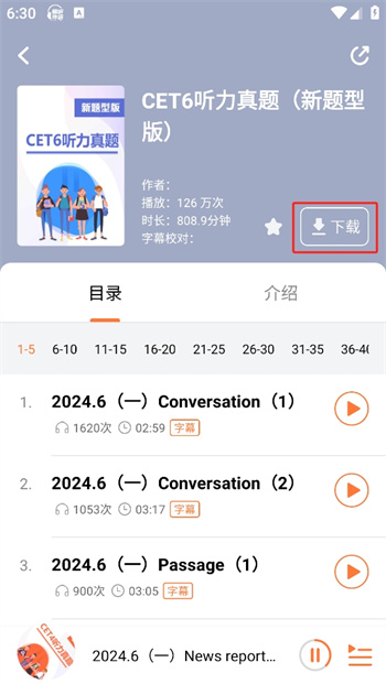 4、下載音頻之前需要先激活,才可以在這里看到【下載】的按鍵,點(diǎn)擊這個(gè)就可以成功的將該資源下的所有音頻都免費(fèi)的下載下來,離線就可以聽到免費(fèi)內(nèi)容。