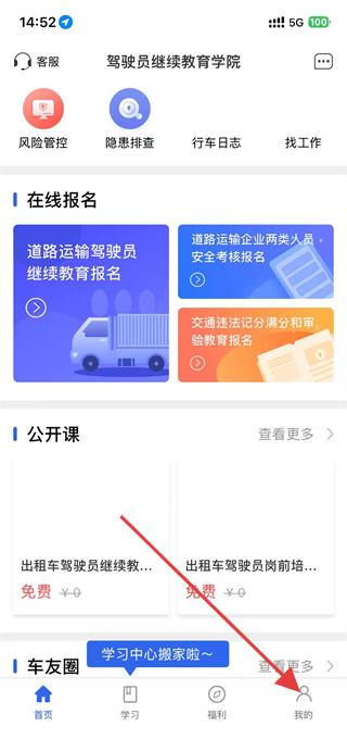 1、打開駕駛員繼續(xù)教育app,點(diǎn)擊底部導(dǎo)航欄的我的選項(xiàng)。