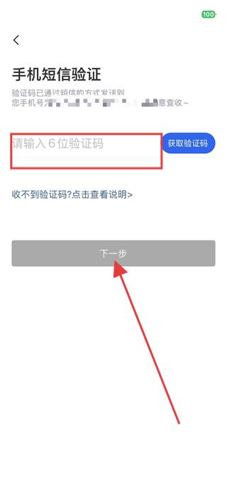 4、填寫收到的驗(yàn)證碼,點(diǎn)擊下一步按鈕,即可完成登錄操作。
