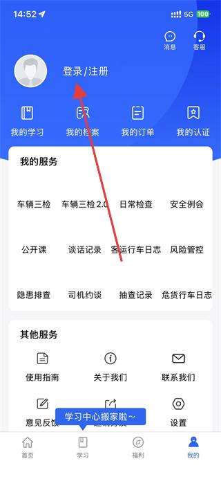2、在我的頁面中,點(diǎn)擊上方登錄/注冊(cè)區(qū)域,進(jìn)入登錄頁面。
