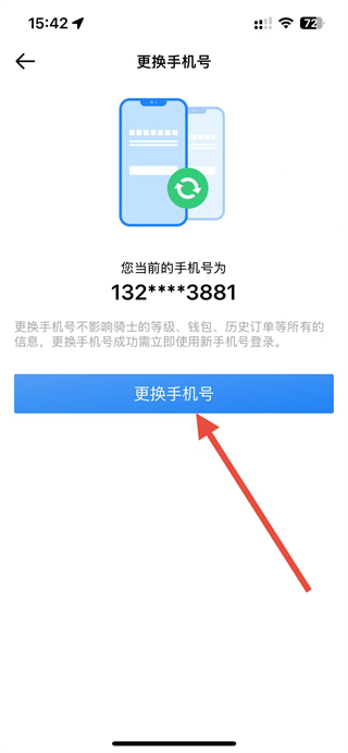 4、在更換手機(jī)號頁面,點(diǎn)擊更換手機(jī)號按鈕,按照提示操作即可完成手機(jī)號更換。