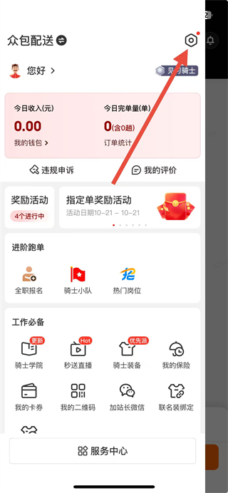 2、在功能列表中點(diǎn)擊服務(wù)中心選項(xiàng),進(jìn)入服務(wù)中心頁面。