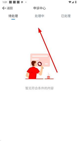 4、在申訴中心頁面可查看待處理、處理中、已處理的申訴記錄。