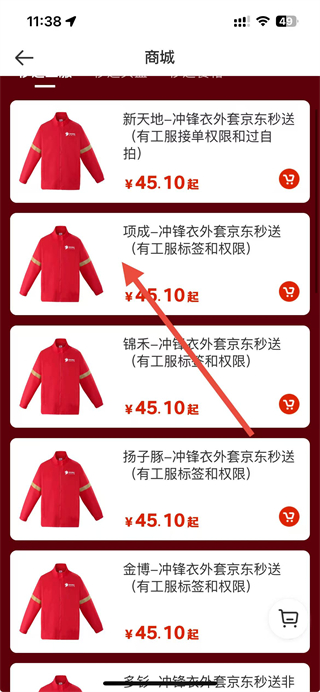 3、在商城頁面選擇目標(biāo)騎手衣服,進(jìn)入商品詳情頁面。