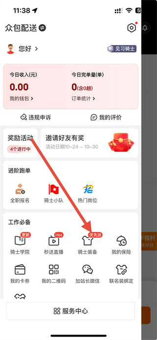 2、在個人頁面點(diǎn)擊騎士裝備選項(xiàng),進(jìn)入商城頁面。