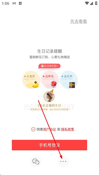 1、打開生日管家,點(diǎn)擊下方的其他登錄方式選項。