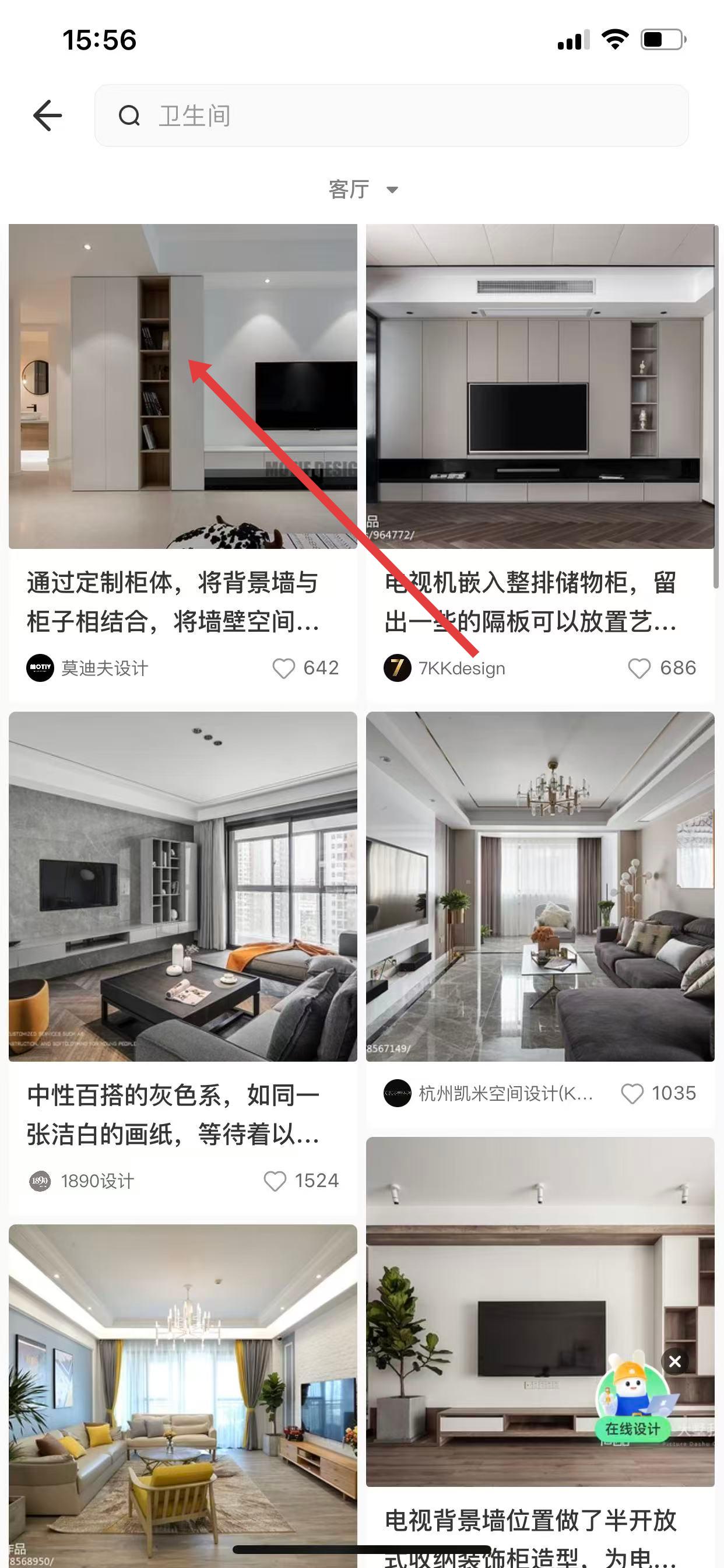3、篩選后,頁面會(huì)展示符合條件的裝修效果圖,點(diǎn)擊您感興趣的效果圖。