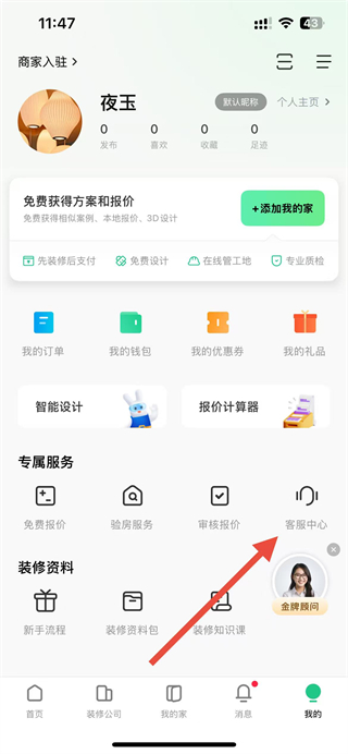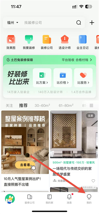 1、打開土巴兔裝修app,點(diǎn)擊右下角我的選項(xiàng),進(jìn)入個(gè)人頁面。