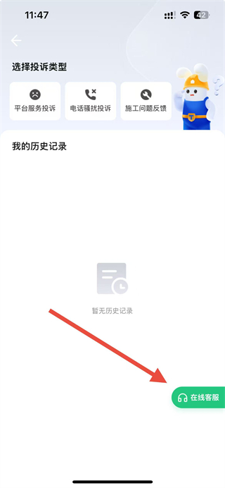 3、在客服服務(wù)頁面點(diǎn)擊右下角在線客服按鈕,進(jìn)入客服對(duì)話頁面。