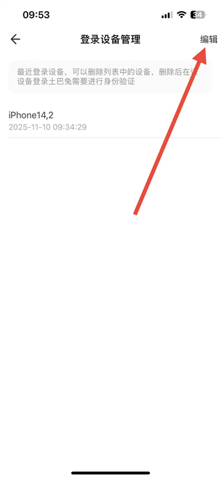 4、在登錄設(shè)備管理頁面,點(diǎn)擊右上角編輯按鈕,即可對(duì)登錄設(shè)備進(jìn)行管理操作。