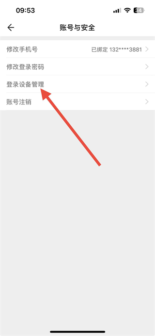 3、在賬號(hào)與安全頁面,點(diǎn)擊登錄設(shè)備管理選項(xiàng),進(jìn)入設(shè)備管理頁面。