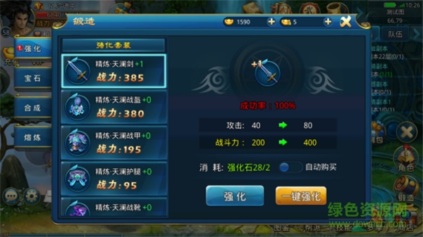 強化可以勾選自動購買,材料不足時自動消耗元寶購買當次強化所需材料。