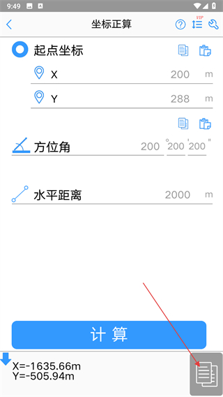 4、計(jì)算完成后,頁面會(huì)顯示出終點(diǎn)坐標(biāo)結(jié)果,點(diǎn)擊右下角的復(fù)制圖標(biāo),可對計(jì)算結(jié)果進(jìn)行復(fù)制。