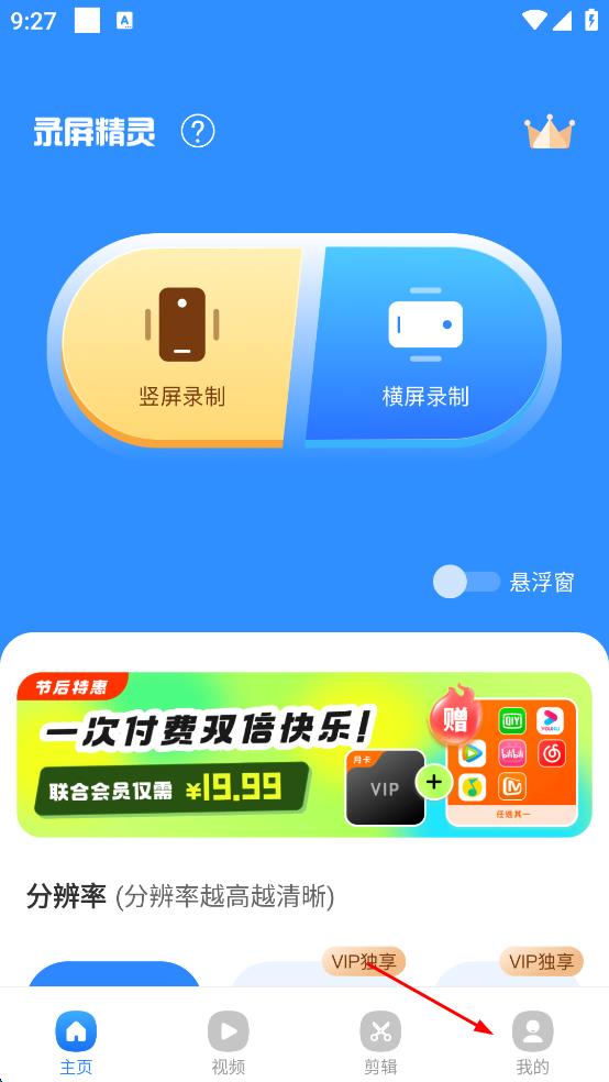 1、打開錄屏精靈軟件,進(jìn)入主頁,點(diǎn)擊右下角“我的”按鈕,進(jìn)入個(gè)人頁面。
