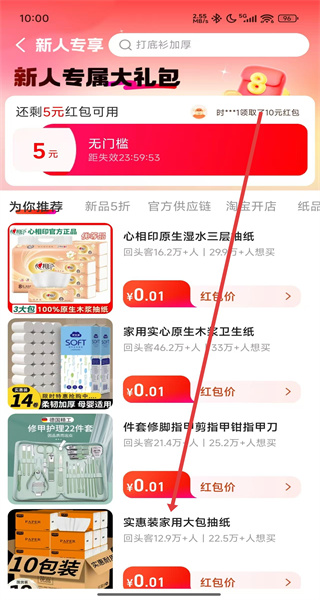 4、在登錄成功后,可以在新人專(zhuān)享頁(yè)面中,點(diǎn)擊商品進(jìn)入查看詳情購(gòu)買(mǎi)。