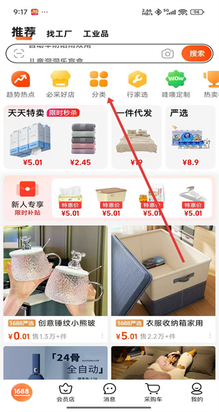 1、打開(kāi)1688APP,點(diǎn)擊“分類(lèi)”,進(jìn)入分類(lèi)頁(yè)面。
