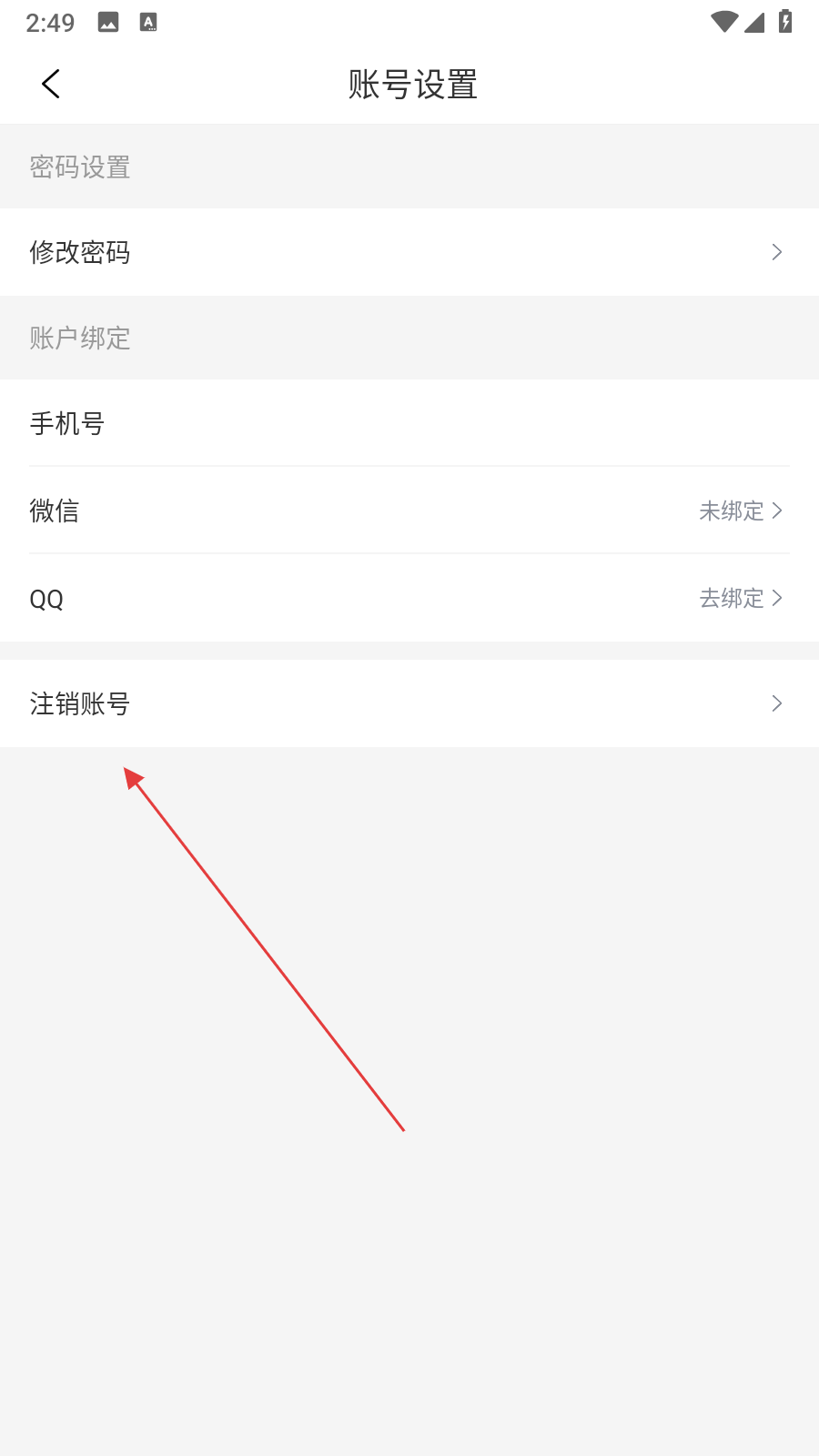 3、在賬號設(shè)置頁面,點擊注銷賬號,進入注銷賬號頁面。