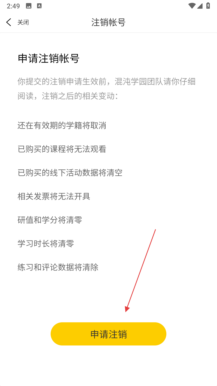 4、點擊申請注銷按鈕,即可發(fā)起混沌APP賬號的注銷申請。